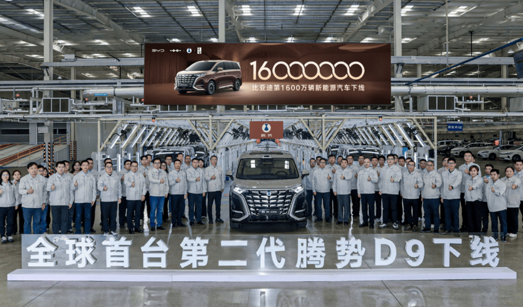 On April 17, BYD announced that its 16 millionth new energy vehicle (NEV) has rolled off the production line, with the milestone unit being the world’s first second-generation Denza D9.